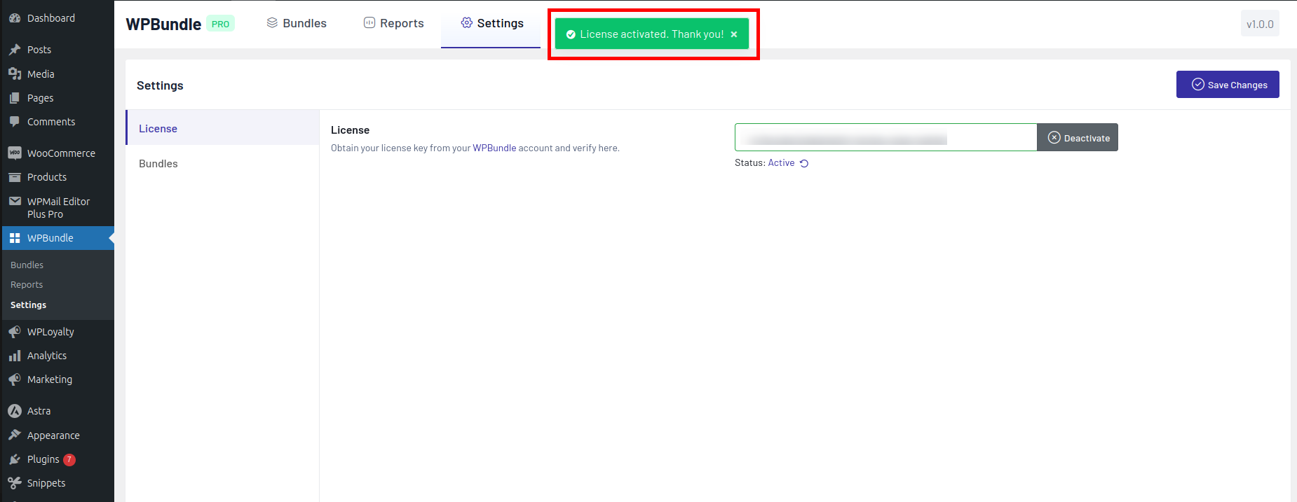 After Validation, you can see a License activated message.